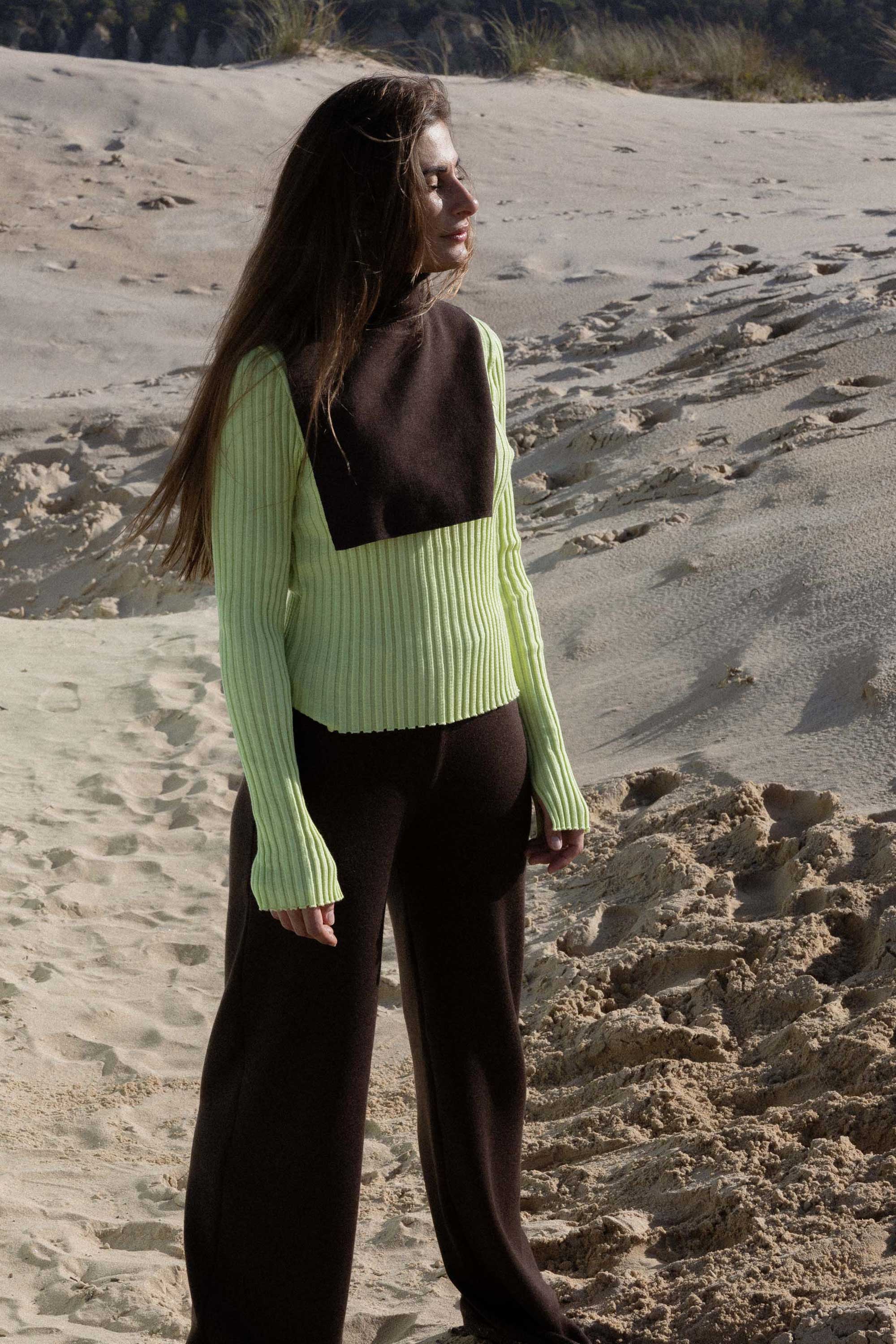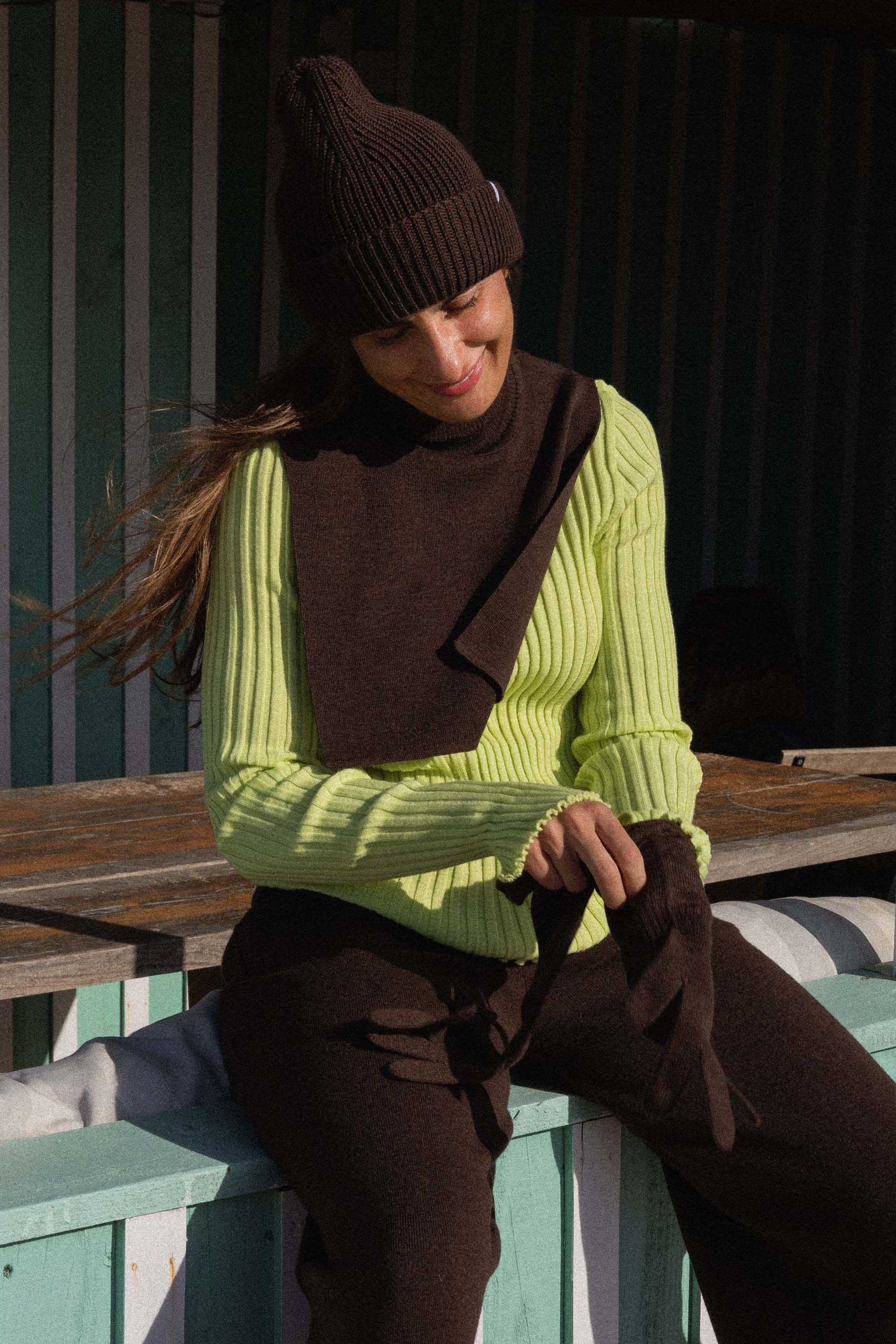 When the temperature drops, you might need an extra layer of warmth. The Punto bib neck is spun from 100% RWS-certified extra fine merino wool, offering a soft, cozy feel. Its high neckline adds both warmth and a touch of effortless style.