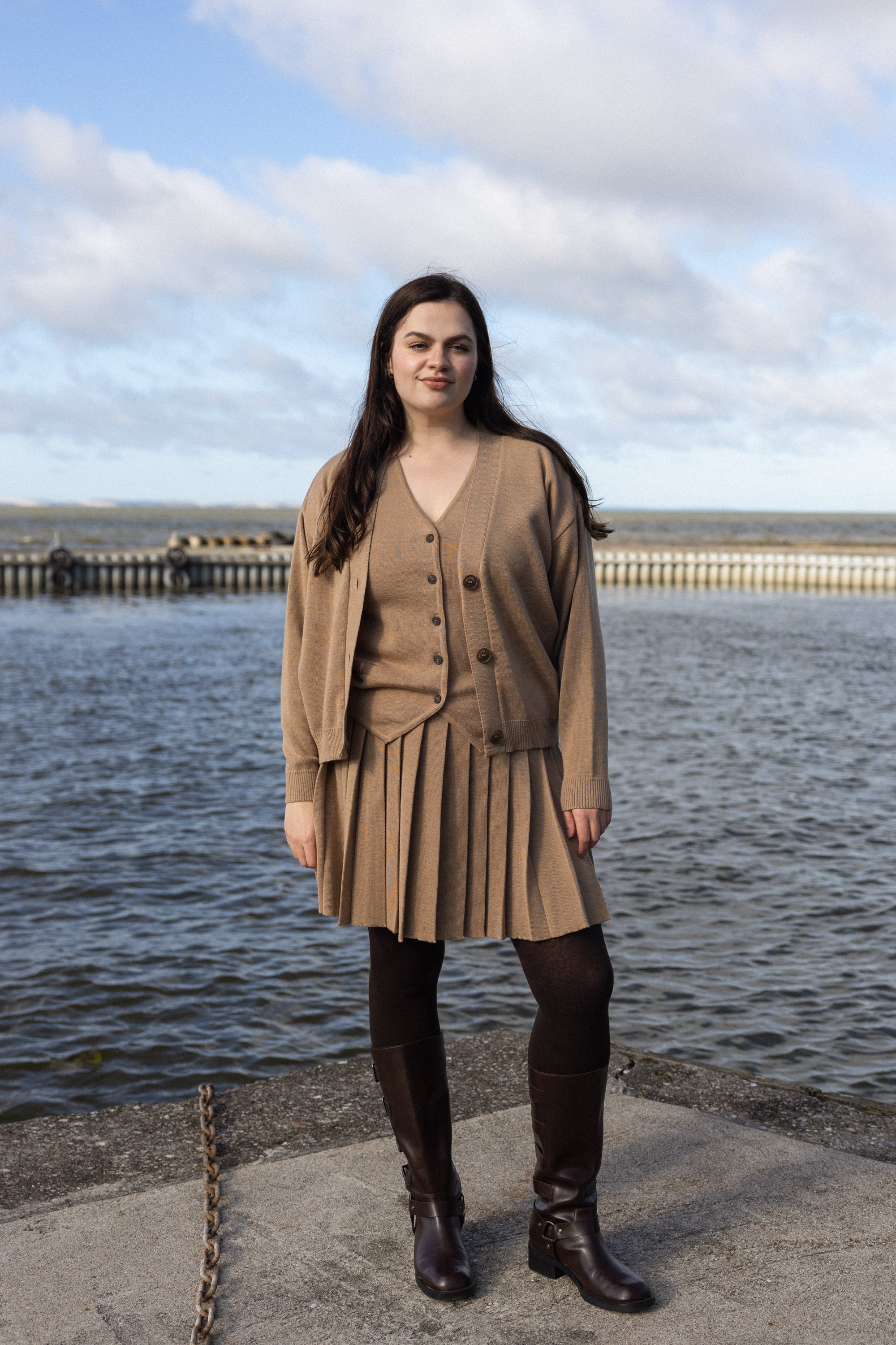 Our knits embody effortless elegance and cozy comfort, crafted to stand the test of time. At SALANIDA, we are mindful of the concerns of the environment and the maker as much as the needs of the customer. Our entire supply chain is located in Europe, all our garments are knitted in Lithuania, at the family owned factory just couple of hours away from our studio. We work with natural Italian materials - 100% merino wool, alpaca, mohair as well as linen, cotton and eco viscose. Inspired by our roots and living on the coast of the Baltics, we bring the sea's spirit into every stitch.