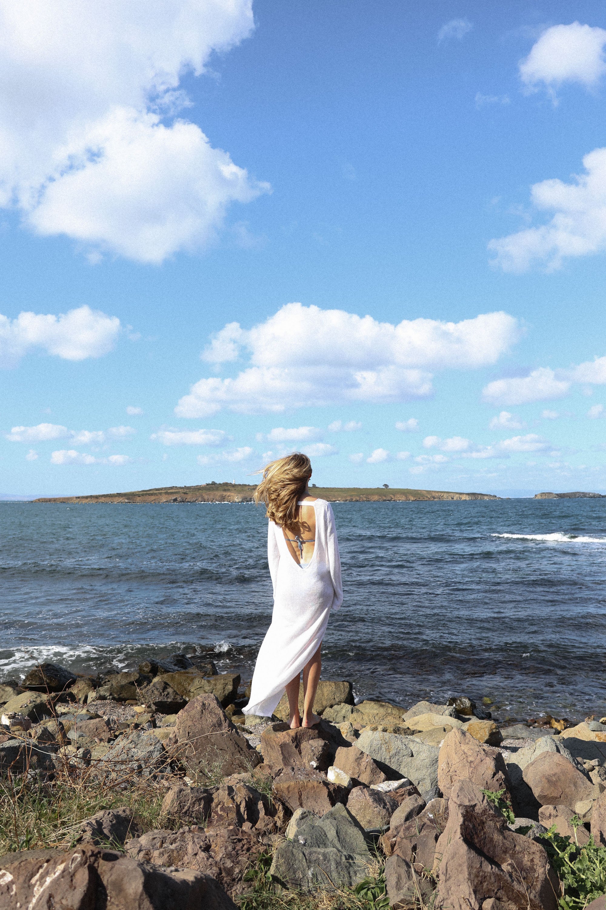 Whether barefoot on the sand or heading to a seaside dinner, this long dress speaks as a modern day sea siren. It drapes beautifully over the body, offering a breezy, effortless silhouette. The deep open back hints at mystery, the high slit adds freedom, and the natural linen wraps your body in a raw, sun-kissed beauty. Let the sea breeze be your perfume, and linen your second skin.