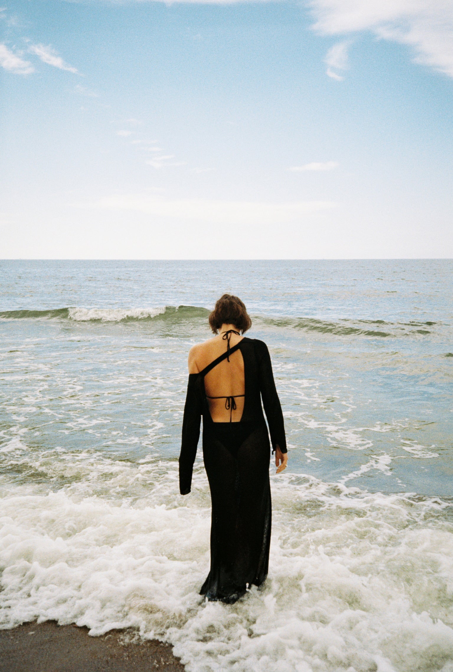 Whether barefoot on the sand or heading to a seaside dinner, this long dress speaks as a modern day sea siren. It drapes beautifully over the body, offering a breezy, effortless silhouette. The deep open back hints at mystery, the high slit adds freedom, and the natural linen wraps your body in a raw, sun-kissed beauty. Let the sea breeze be your perfume, and linen your second skin.