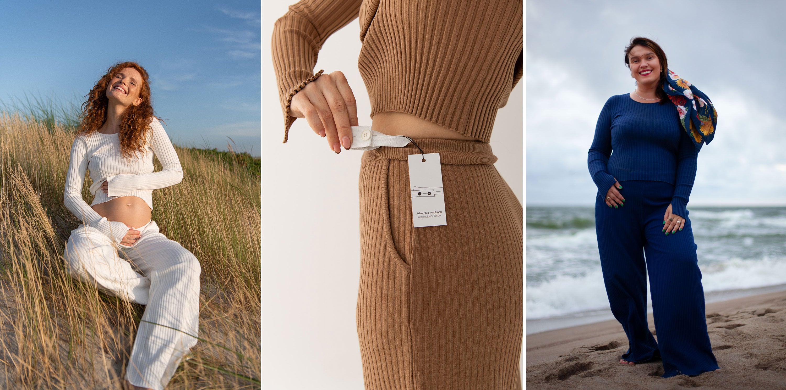 Most of our styles have just one or two sizes as they are designed and engineered in such way to perfectly fit most people. Our knitted pants are stretchy and said to be most comfortable our customers ever had. They come in two sizes and length variations and also have an adjustable waistband ensuring the best sit on the waist. Yes, just like in children's clothes! Our clients agreed the fit was just perfect to adapt even during pregnancy.