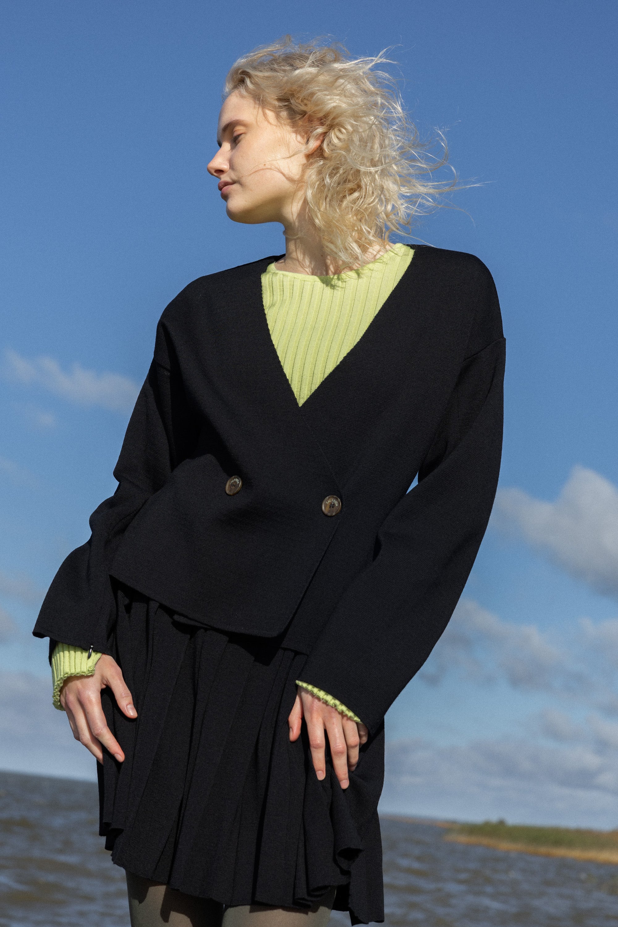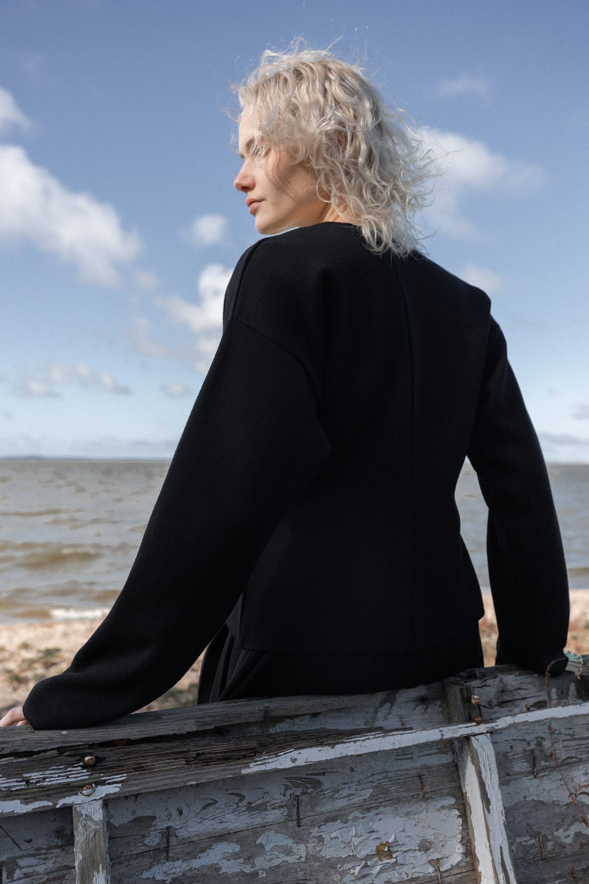 Galante blazer brings modern ease to timeless tailoring. It’s designed with a softly structured silhouette that subtly accentuates the waist with a double-breasted front. Discreet zip details at the sleeves add a contemporary touch, allowing subtle styling. Knitted from 100% RWS-certified extra fine merino wool, it's warm and soft.