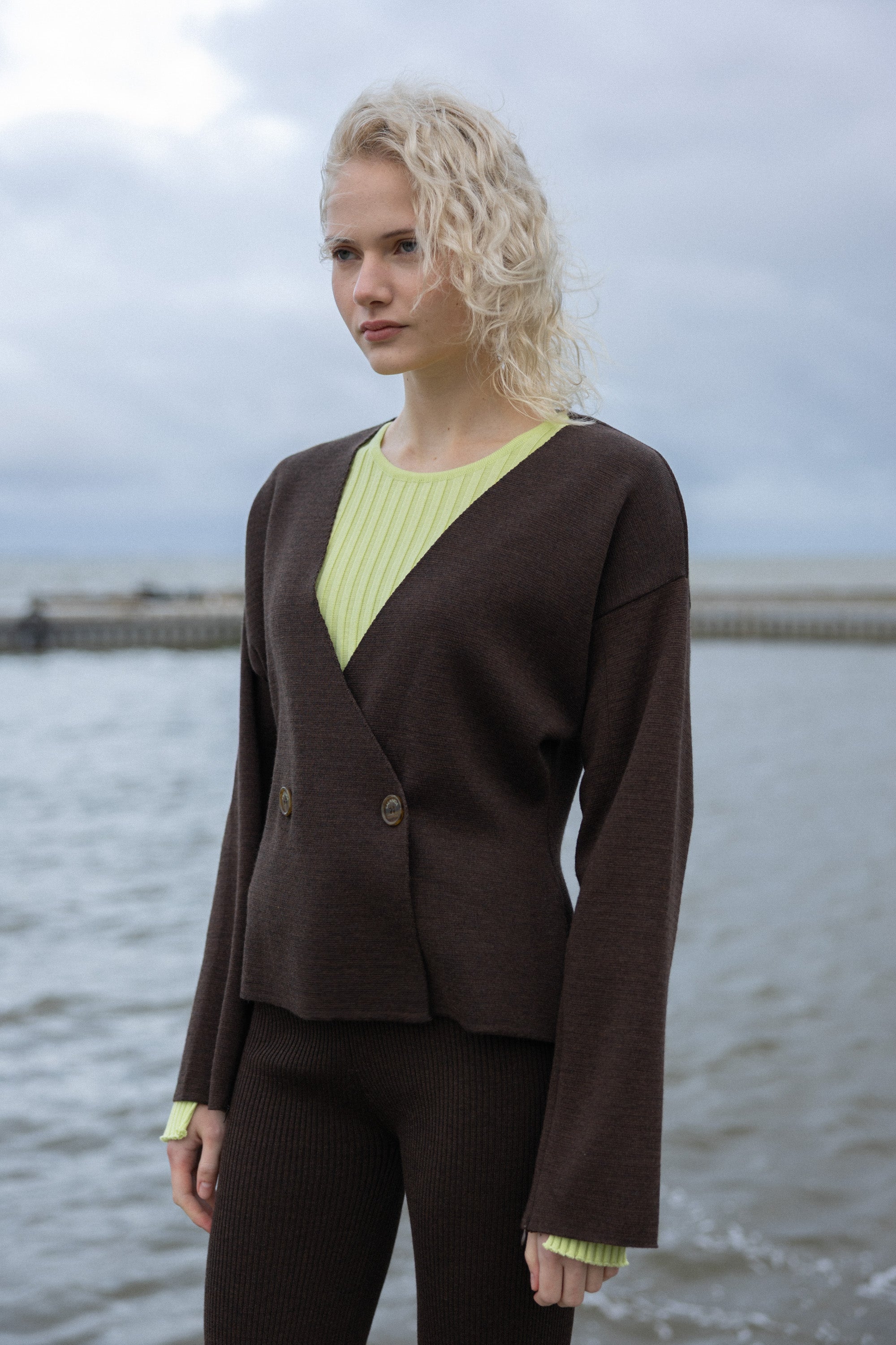 Galante blazer brings modern ease to timeless tailoring. It’s designed with a softly structured silhouette that subtly accentuates the waist with a double-breasted front. Discreet zip details at the sleeves add a contemporary touch, allowing subtle styling. Knitted from 100% RWS-certified extra fine merino wool, it's warm and soft.