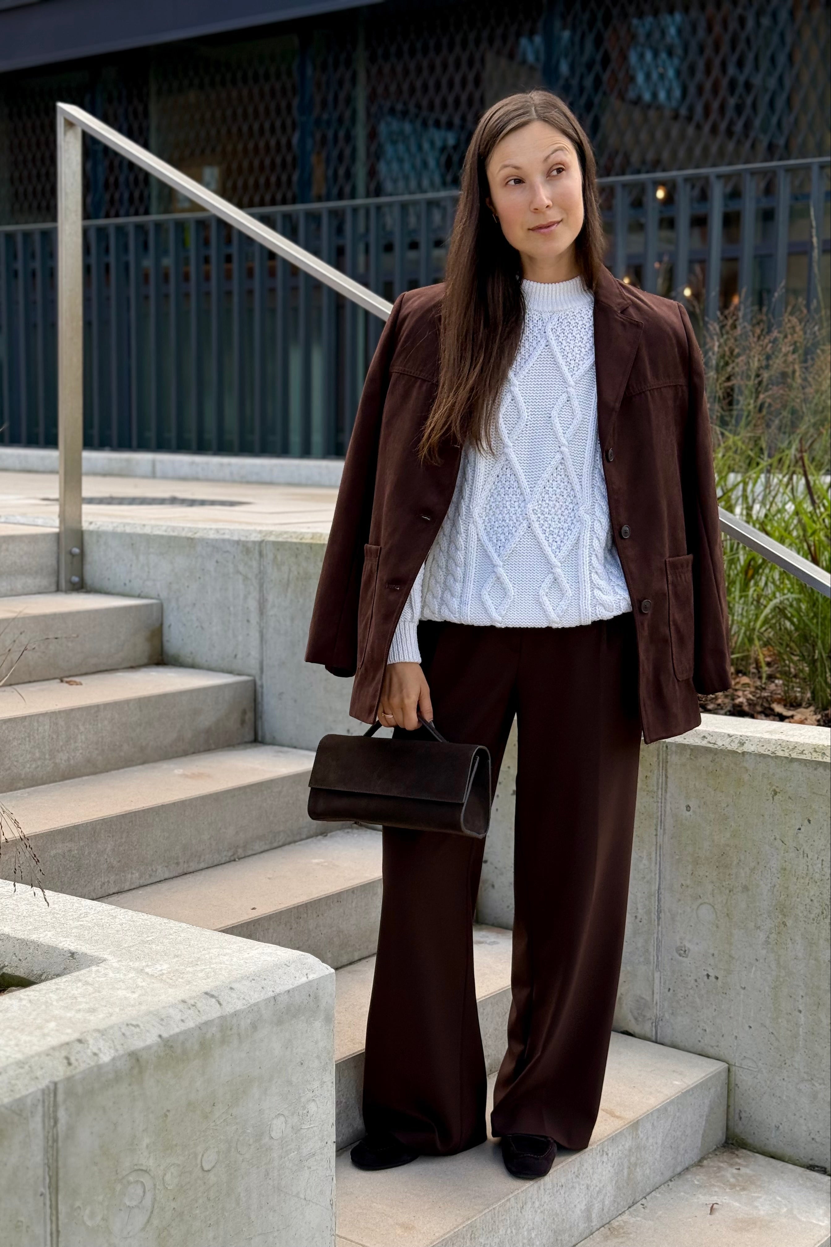 The Nonna sweater is designed in a One Size fit, featuring chunky cables and a relaxed silhouette — perfect for a variety of body types. A timeless style for the colder season, it’s made to last for years to come. This sweater will quickly become a cozy go-to piece for when the temperatures drop, providing both warmth and effortless comfort.
