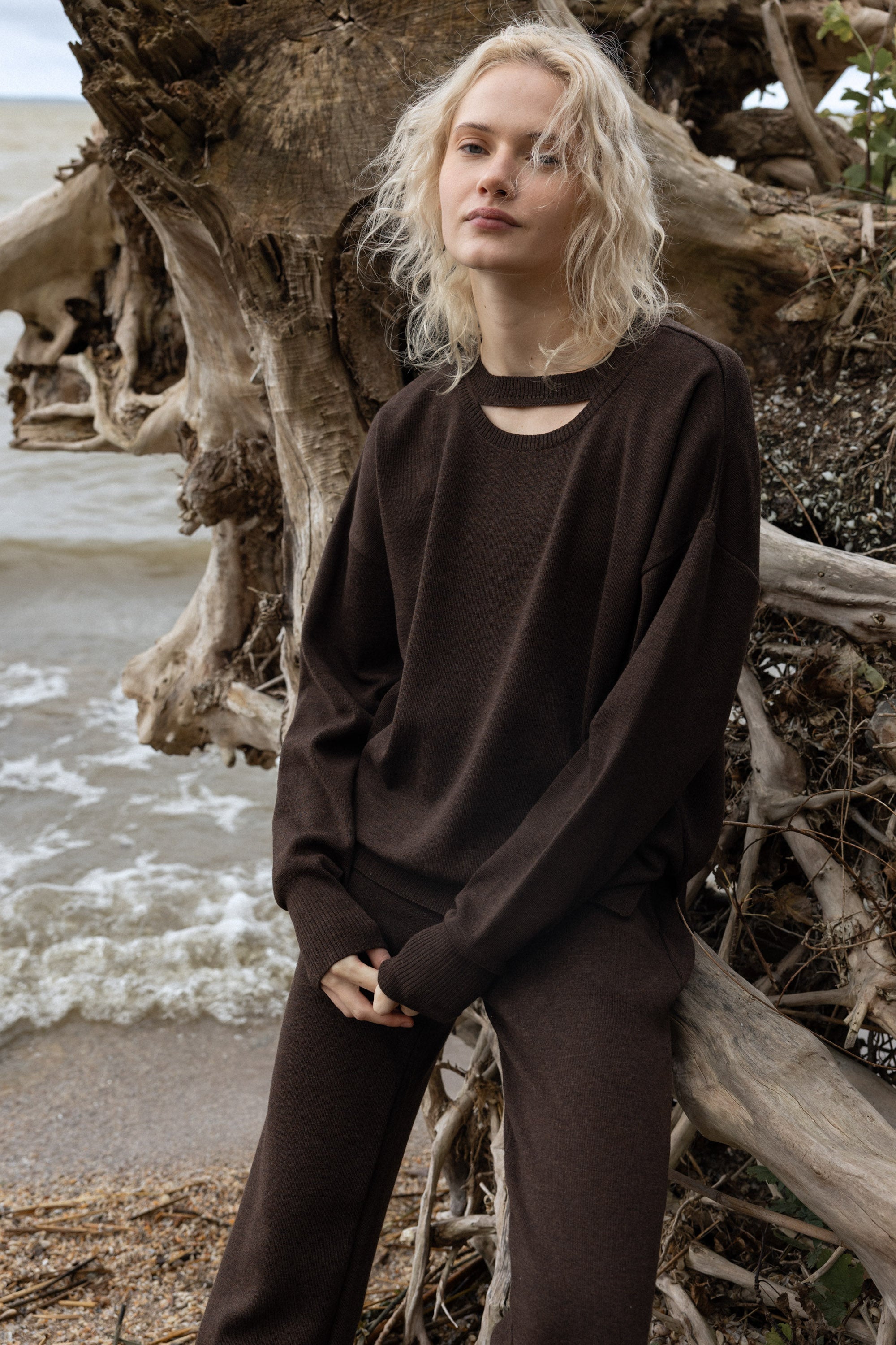 Knitted in 100% RWS-certified extra fine merino wool it's warm and comfy. Wear it together with coordinating Ora pants for the perfect at-home to outdoors look.
